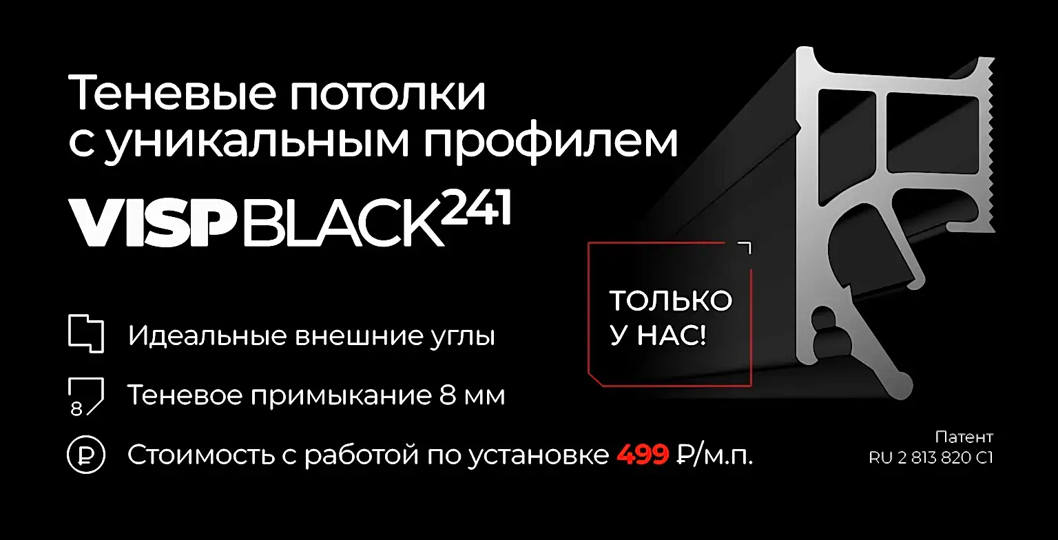 Монтаж потолка с профилем VISP BLACK 241 и полотном Пинап M9001 (6.25) 32 м2 в квартире