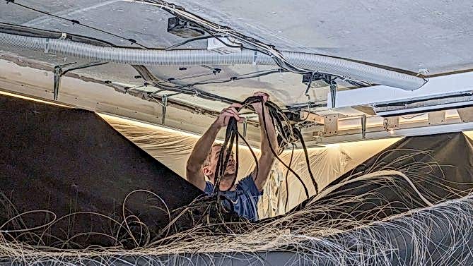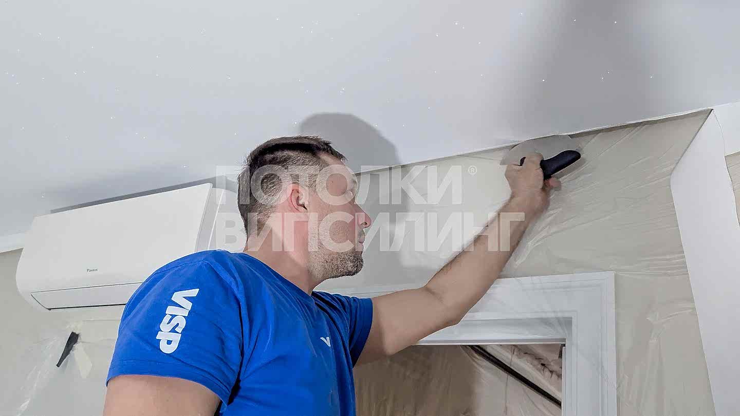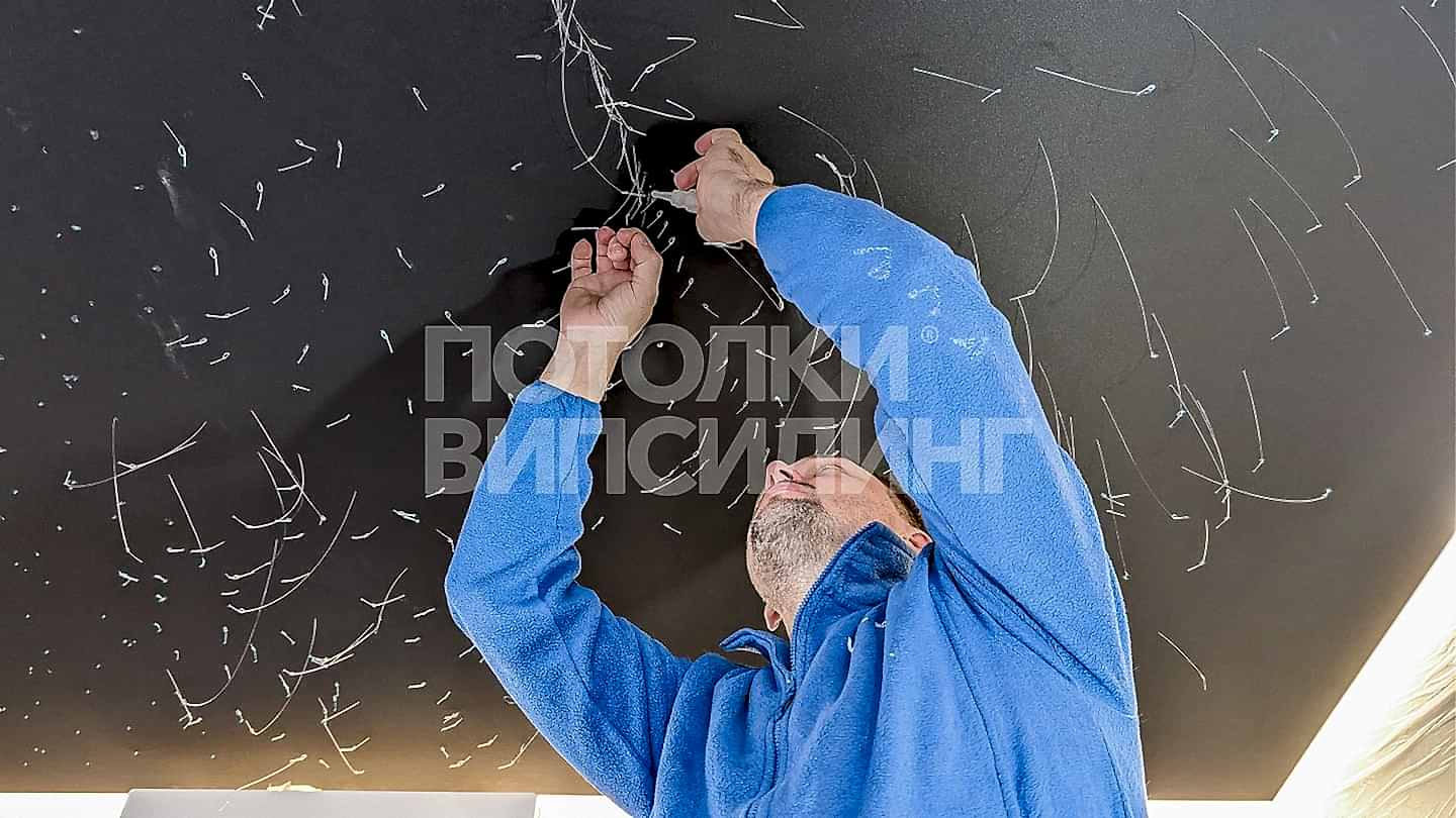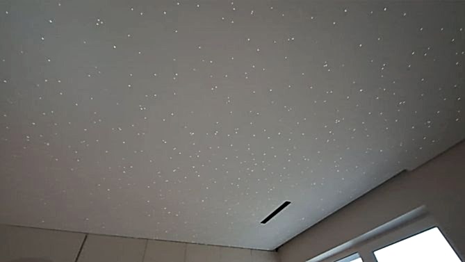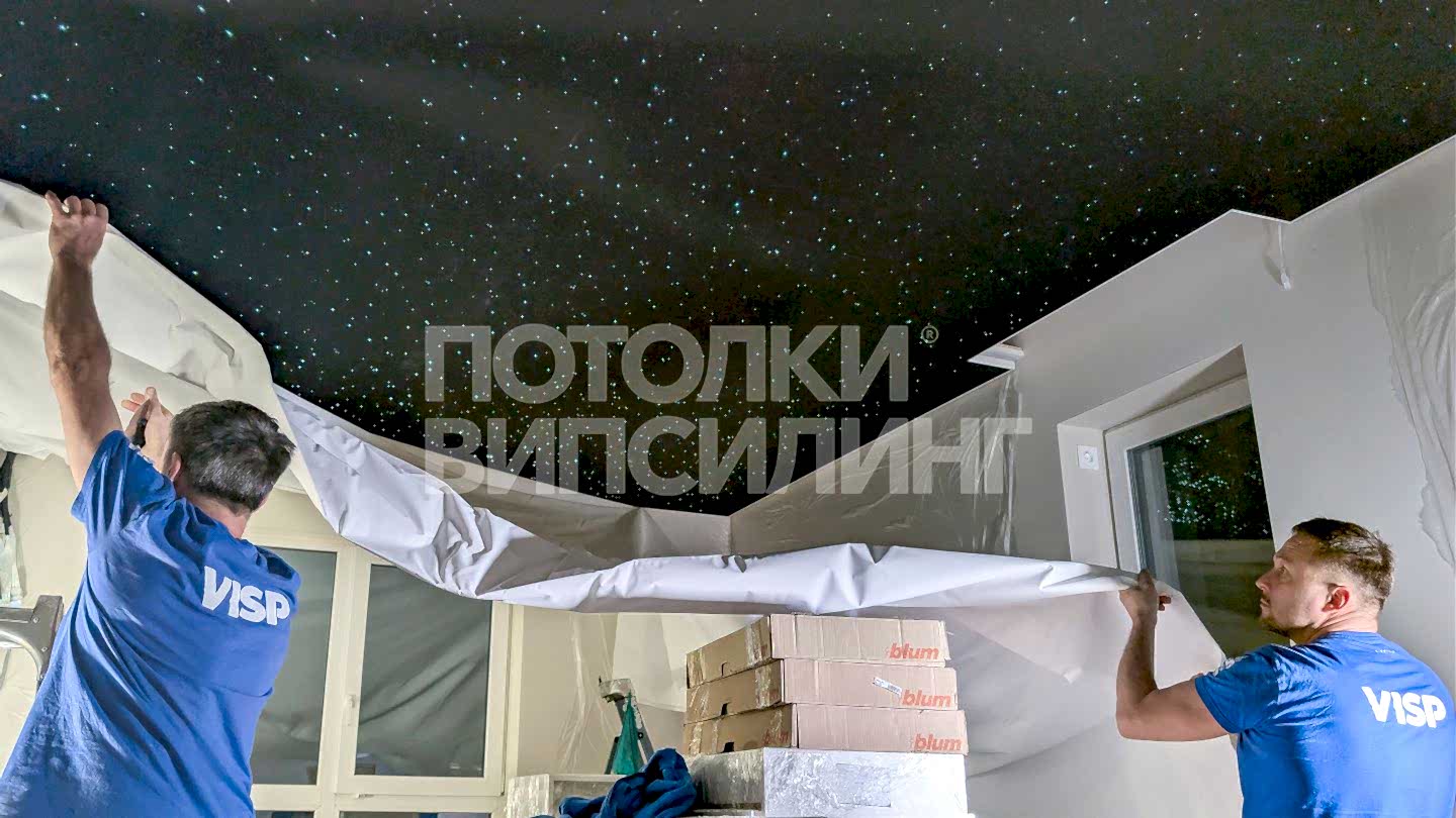 Монтаж потолка звездное небо в квартире 20 м2 с использованием тканевого Пинап