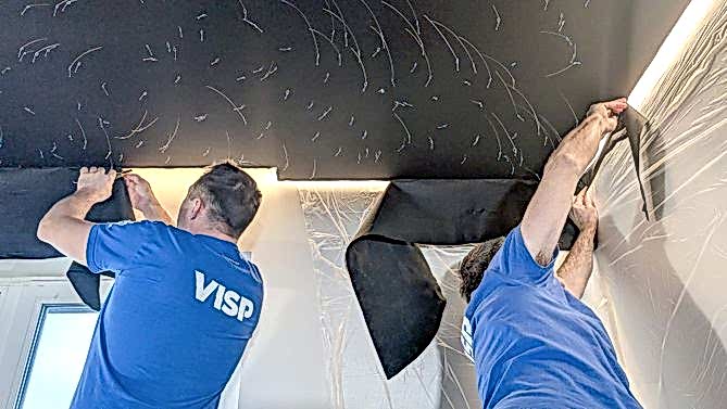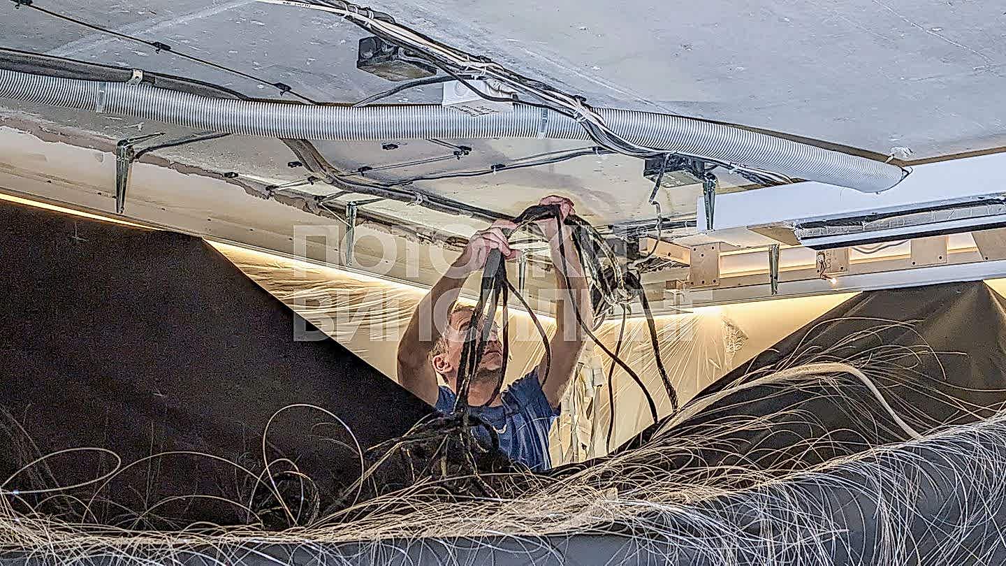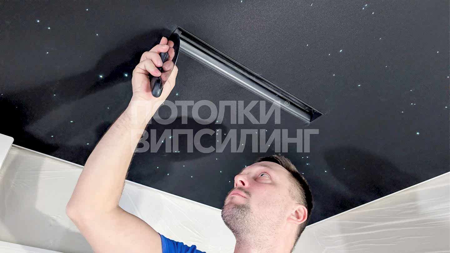 Монтаж потолка с профилем VISP BLACK 241 и Пинап VISP M9001 (6.25) 32 м2 в квартире