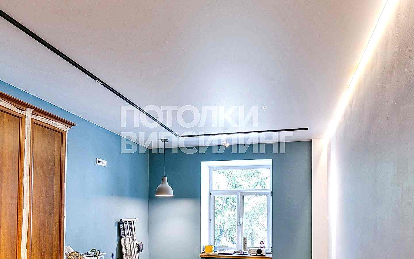 Монтаж потолка в спальне 12 м2 с использованием пленки Пинап M9001 (3.25)