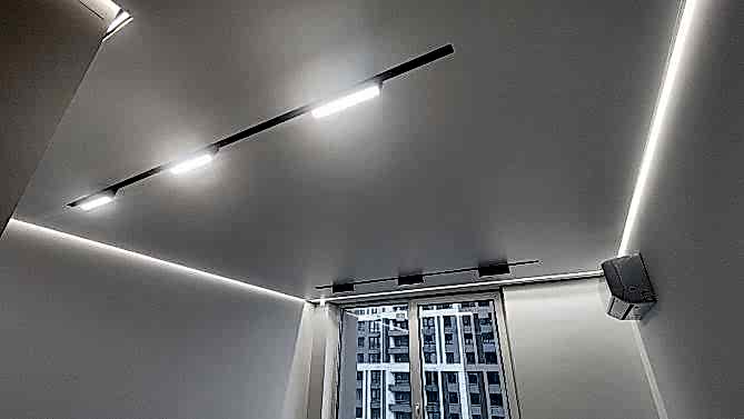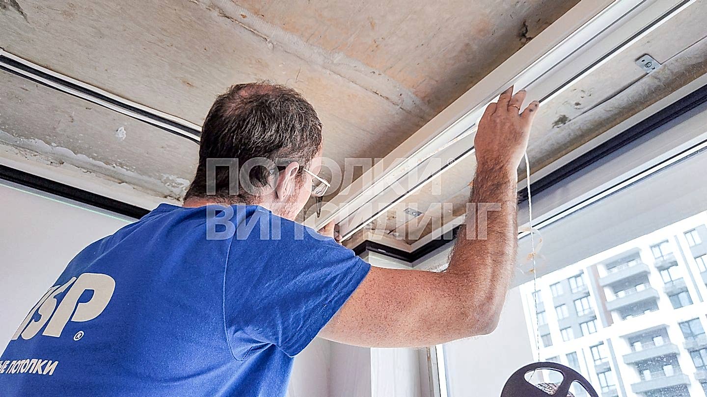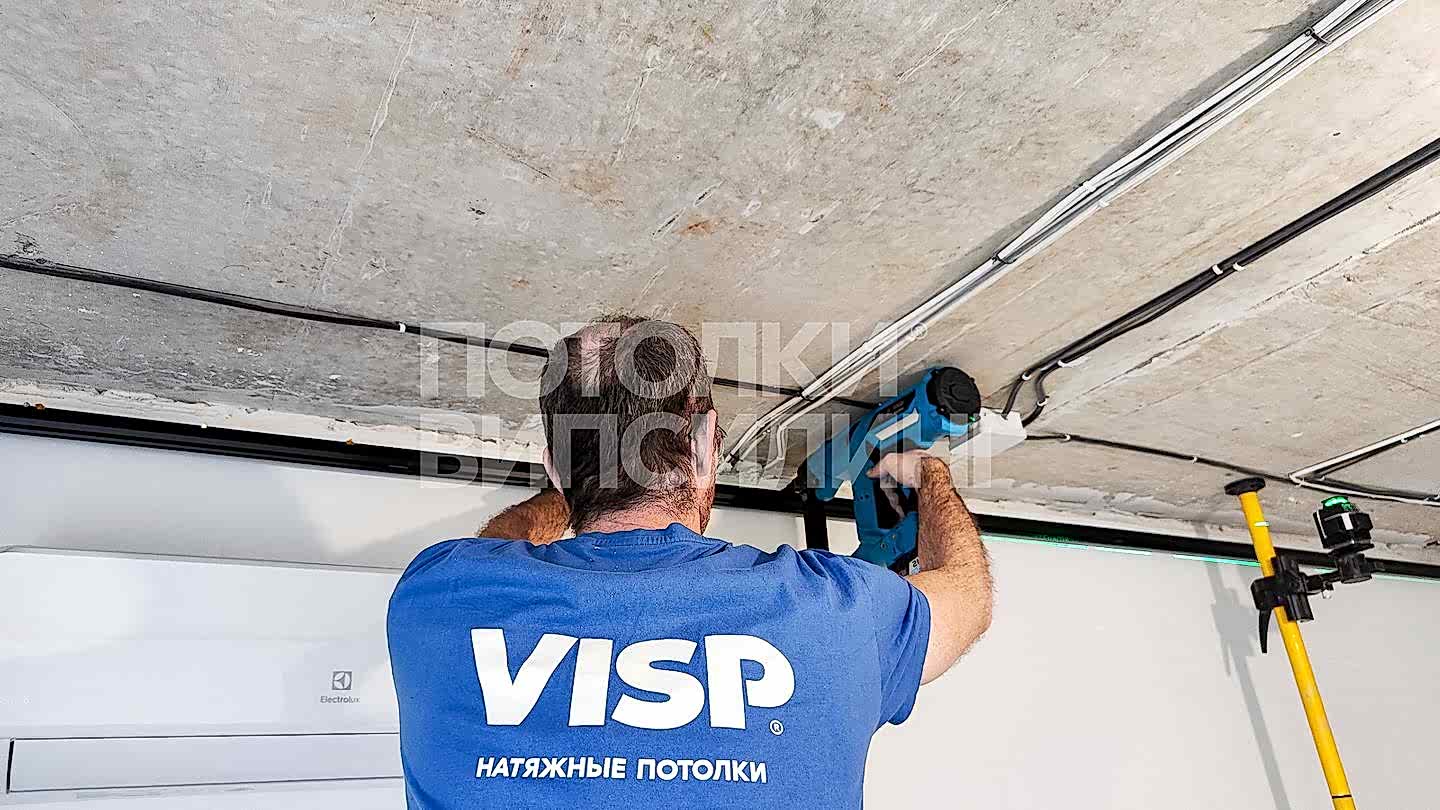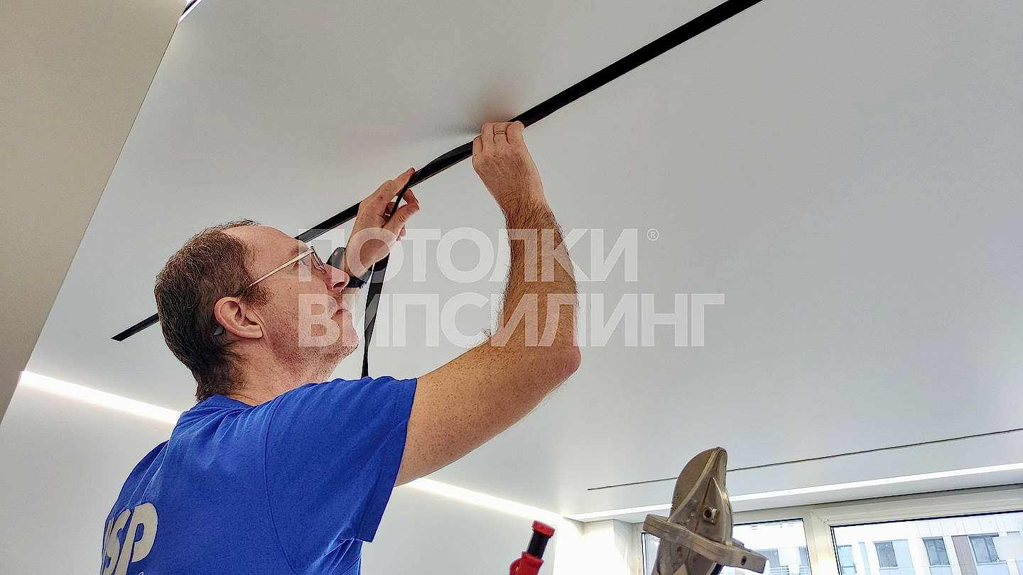 Монтаж потолка с профилем VISP Пинап 241 и полотном VISP M9001 (6.25) 32 м2 в квартире