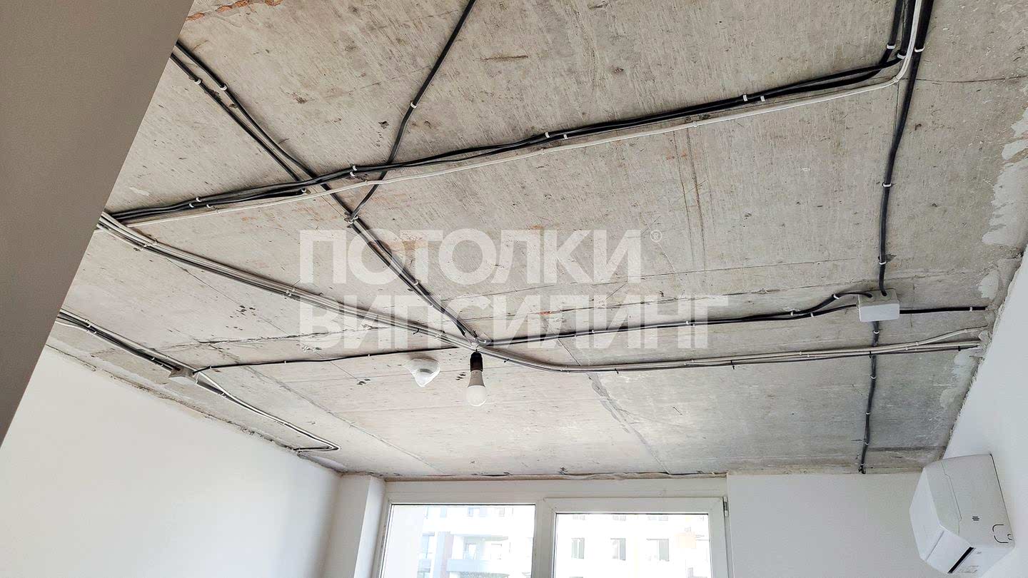 Натяжное полотно Пинап электропроводку, коммуникации и дефекты базового потолка