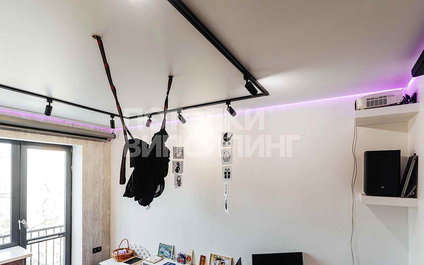 Монтаж Пинап с профилем VISP BLACK 241 и полотном VISP M9001 (6.25) 32 м2 в квартире